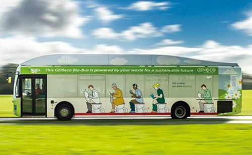 公交車(chē)上的40人每年糞便產(chǎn)生的燃料,可供Bio-Bus往返英格蘭西南的蘭茲角(Land's End)到蘇格蘭陸地最北端的天涯海角(John O'Groats),且排放量比柴油更少。