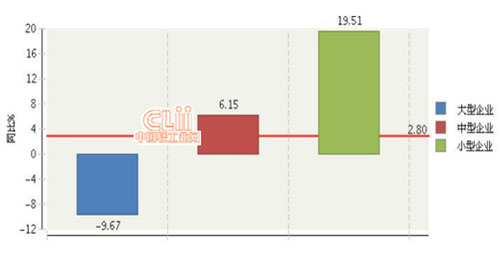 從企業規模來看,中型企業利潤增長速度最快,同比增長75.12%。