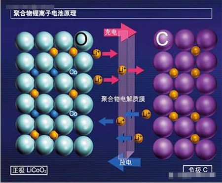我們按照使用的習(xí)慣,根據(jù)充放電時(shí)的電壓差區(qū)分正極(+)和負(fù)極(-),這里不講陽(yáng)極和陰極,費(fèi)時(shí)費(fèi)力。這張圖上,電池的正極材料是鈷酸鋰(LiCoO2),負(fù)極材料是石墨(C)。