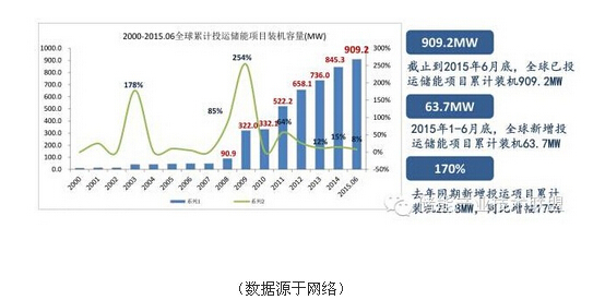 2015年上半年,全球儲能市場持續發酵,應用需求進一步增大。根據CNESA數據庫統計,截止到2015年6月底,全球新增儲能項目45個,裝機307.5MW,其中投運項目14個,裝機63.7MW;在建項目4個,裝機47.5MW;規劃的項目27個,裝機196.3MW。