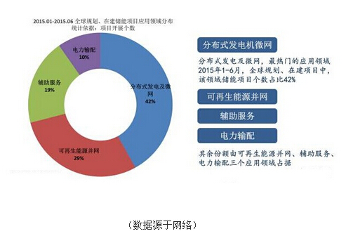 從應用分布來看,上半年的應用熱點是分布式發電及微網,其項目數量占規劃及在建項目總數的42%。其次是可再生能源并網,輔助服務和電力輸配領域。