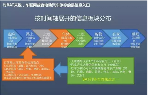 至于大家都在問的,為啥BAT現在不動手呢?第一是因為現在電動汽車數量太少,達不到入門的量級,意義不大,放著讓別人先占地唄;第二是BAT先集中精力把汽油車的車聯網和商業鏈條豐滿起來,疊加一個電動汽車是So Easy的事情。