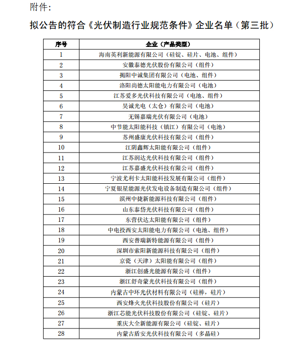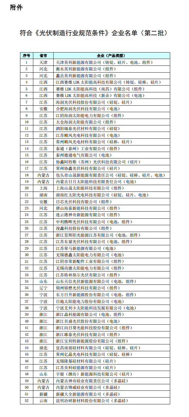 工信部公布第四批符合《光伏制造行業(yè)規(guī)范條件》企業(yè)名單