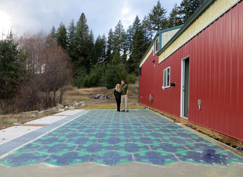 這對來自愛達荷州的夫婦正站在太陽能路公司的概念原型前。