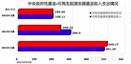 2014年中央財政可再生能源發(fā)展基金收入的基金只有不到500億元的規(guī)模,相比高速增長的可再生能源裝機,基金的缺口越來越大。