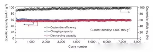 為測試電池在不同狀況下的使用壽命,斯坦福的研究人員對電池進(jìn)行了數(shù)千次一分鐘內(nèi)的快速充放電。在超過7500次的充放電循環(huán)里,研究人員發(fā)現(xiàn)電池容量基本沒有損耗。