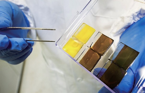 鈣鈦礦是太陽能領(lǐng)域相當(dāng)熱門的一種晶體材料。鈣鈦礦的太陽能電池制作成本相對較小,它們的光電轉(zhuǎn)換效率近年來也是迅速增加。 研究人員報道過效率高于20%的鈣鈦礦電池,可與傳統(tǒng)的硅電池媲美。然而,目前為止,那些高效率是在只有0.1平方厘米大小的電池上實現(xiàn)的,這種尺寸只適用于實驗室測試,但不適用于太陽能電池板。
