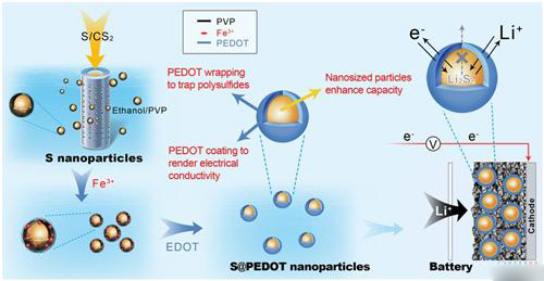 納米硫陰極材料可以帶來高達(dá)1672毫安/克的理論容量,這對(duì)于下一代電池來說很有吸引力。不過在實(shí)際應(yīng)用中,高電阻、低載荷活性物質(zhì)以及充放電時(shí)電解質(zhì)中間聚硫化物分解等問題仍然帶來了不小的挑戰(zhàn),這些問題會(huì)導(dǎo)致庫侖效率下降、電池容量損耗加快,同時(shí)也會(huì)發(fā)生自放電現(xiàn)象。