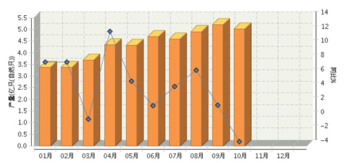 根據(jù)國家統(tǒng)計局公布數(shù)據(jù),2015年1~10月,全國鋰離子電池行業(yè)累計完成產(chǎn)量同比增長-2.19%。其中:10月份完成產(chǎn)量同比增長-3.4%。2015年全國鋰離子電池行業(yè)月度產(chǎn)量及同比如上圖所示。