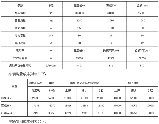C全生命周期成本=C整車售價+C購置稅—C政府補貼+C能耗費用+C車輛維護費用+C電池更換成本