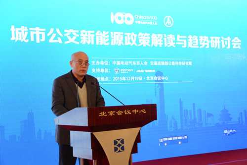 2015年12月19日,由中國(guó)電動(dòng)汽車百人會(huì)與交通運(yùn)輸部公路科學(xué)研究院聯(lián)合舉辦的“城市公交新能源政策解讀與趨勢(shì)研討會(huì)”在北京召開。