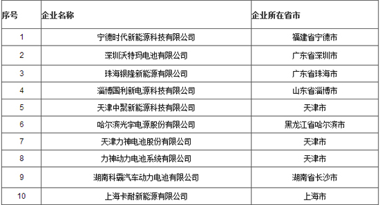 9.《汽車動力蓄電池行業規范條件》企業目錄(第一批)