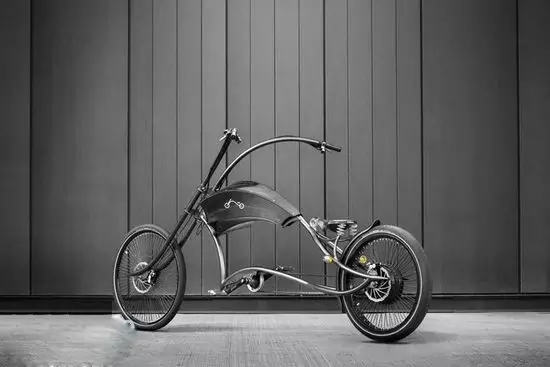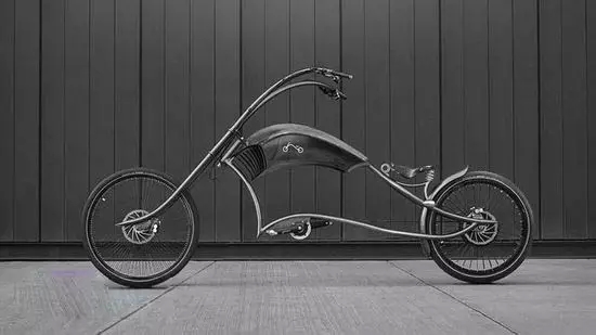 這輛電動(dòng)自行車采用純手工打造,看到這優(yōu)美的弧線都是熟手的鈑金師傅親手凹出,十足哈雷范,在上面完全可以騎出阿諾斯瓦辛格的感(cuo)覺(jue),同時(shí)車架由不銹鋼制成,重量55kg,根據(jù)自己對體形的自信程度,還可以懸著2600、2800、3000mm三種長度,真不知道3m長的電動(dòng)自行車騎起來會(huì)是什么樣的體驗(yàn)。