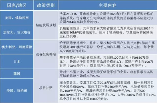 表1:近年不同地區對儲能的支持政策