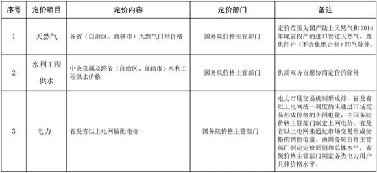 《中央定價(jià)目錄》經(jīng)國(guó)務(wù)院批準(zhǔn),自2016年1月1日起施行。目錄顯示,天然氣定價(jià)內(nèi)容為各省(自治區(qū)、直轄市)天然氣門(mén)站價(jià)格,定價(jià)部門(mén)為國(guó)務(wù)院價(jià)格主管部門(mén)。電力定價(jià)內(nèi)容為省及省以上電網(wǎng)輸配電價(jià),定價(jià)部門(mén)為國(guó)務(wù)院價(jià)格主管部門(mén)。