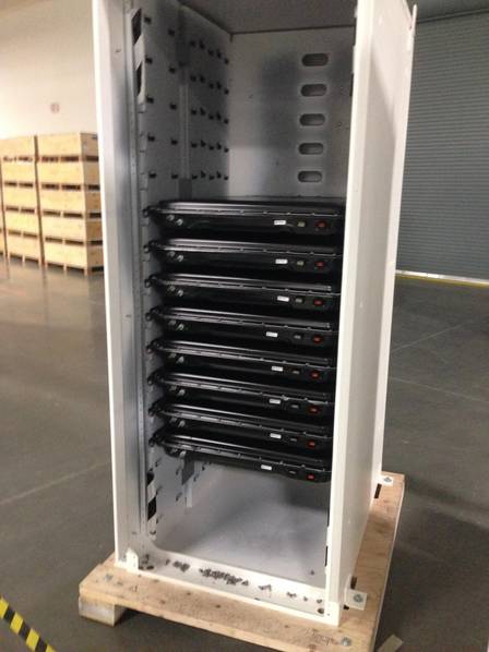 這個白白的一塊就是特斯拉的Powerwall電池啦。Powerwall是一款家用可充電電池,由特斯拉在去年5月份發布,售價3000美元起。除了Powerwall,特斯拉超級電池工廠目前還在生產一款面向企業用戶的儲能電池產品——Powerpacks。